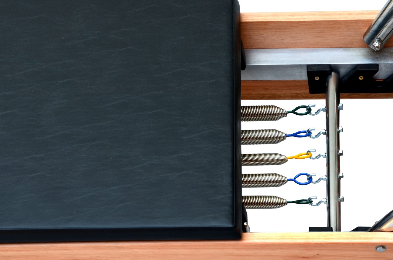 O novo Reformer é construído com um chassi de 17 cm de largura por 32mm de espessura, sistema de Montagem e Colagem com Respiga, o que garante uma configuração única no mercado Brasileiro, isso faz com que o equipamento seja muito mais robusto, durável e estável.